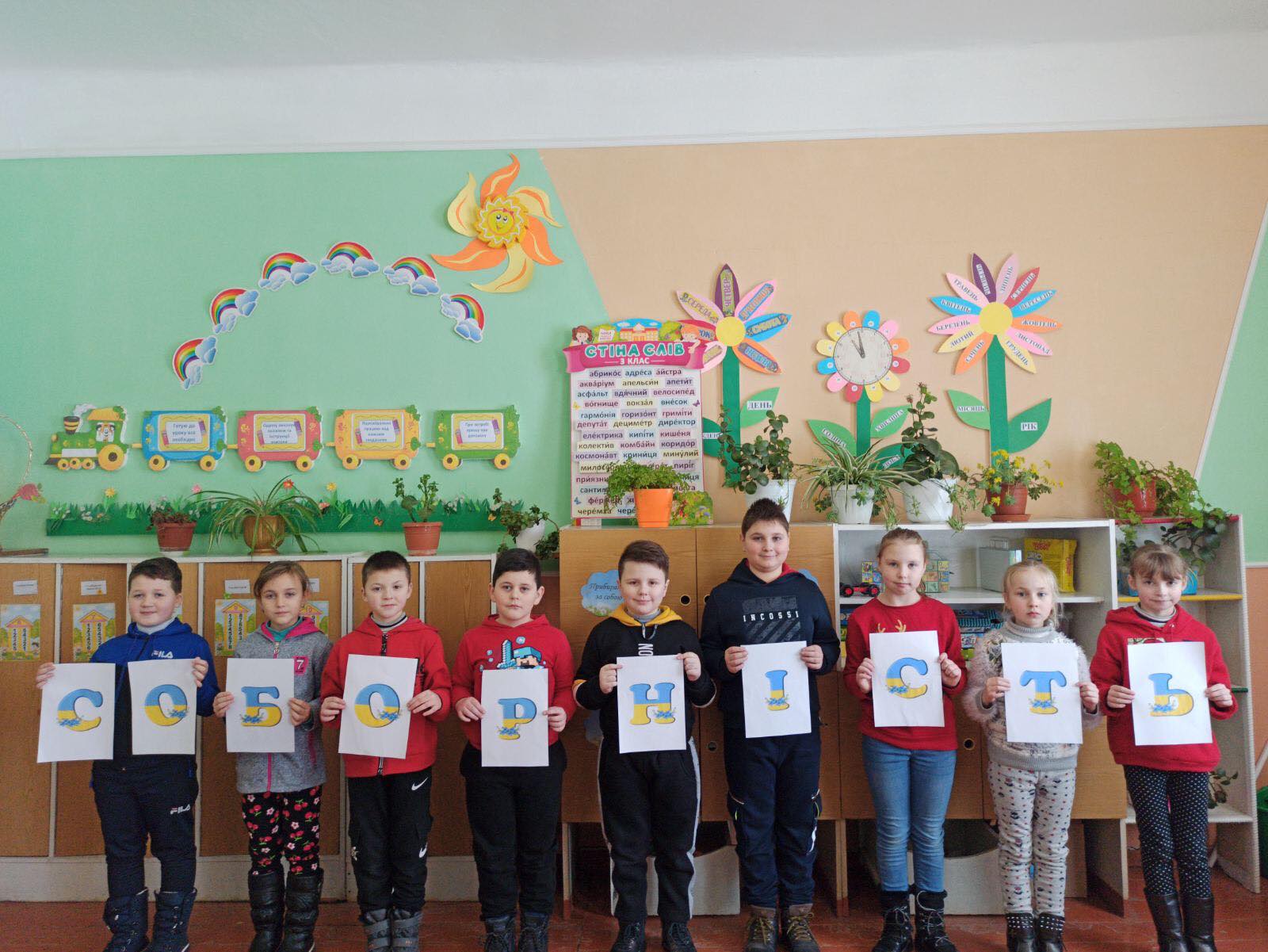 “Соборна мати Україна-одна на всіх,як оберіг!”.Основною метою виховної години було ознайомлення учнів 1 класу із історією виникнення Дня Соборності.Вчитель Денега М.А. розповіла,як саме було досягнено єдності багато років назад та ,як важливо зараз українському народу бути в єдності.Бо для нас Україна-це мати,яку не вибирають,бо Україна-це наше минуле,сьогодення і майбутнє!